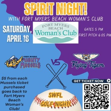 Join the Woman’s Club at Hammond Stadium on Saturday, April 18th, for a night packed with excitement and community fun. It’s a Spirit Night for Fort Myers Beach Woman’s Club, where members and guests will enjoy a thrilling Mussels game.
