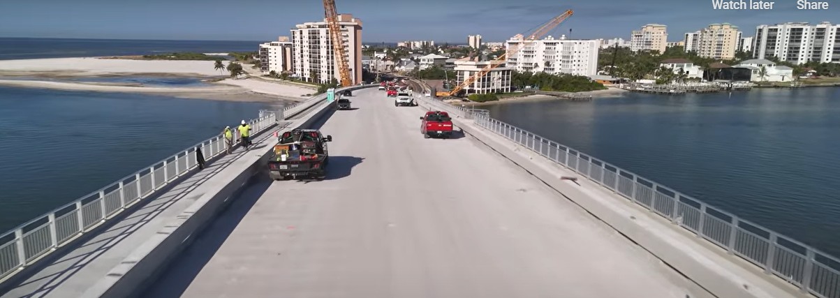 Travel lanes will be shifted on the west end of the bridge near Fort Myers Beach as crews finalize work on this span. The navigational channel will shift to the east as this work is completed later this year. The vertical navigation clearance of the new channel is 60 feet.
