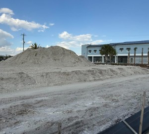 You may recall that property had been used to store gigantic piles of town owned dirt transferred over from the Bay Oaks property. According to the town’s Community Services Director, Jeff Hauge, it would cost $400,000 to $500,000 to haul the remaining sand off the island. Rather than do that, it will be compacted down and used as the base for the parking lot. However, as the design of the lot evolved, it became clear that a retaining wall was needed to stabilize the site.